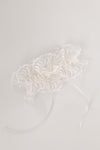 It was an honor working with my bride and her Mom's wedding dress to hand make this custom wedding garter with lace and pearls.