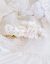 Here are the photos of the custom wedding garter made from the Bride's Mom's wedding dress.