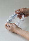 This one's for those who like the traditional white of white for bride's style and accessories. A beautiful wedding garter in all white satin! On the inside of this garter I personalized it for the bride. She chose to have the couple's initials and wedding date embroidered in blue. I also made a matching tossing garter in white.