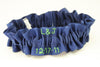 Gorgeous and personalized, I loved working on this custom wedding garter for the bride to be. I hand made this wedding garter in a chic navy blue color and then personalized it in an apple green hand embroidery.