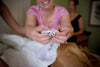 I designed this beautiful something blue wedding garter for a maid of honor to give to her sister! The bride and groom, Allison and Michael, were recently featured on Charleston South Carolina wedding blog, The Row. Allison's custom wedding garter was so pretty! It had a light blue background with an overlay of ivory lace and a pretty light blue bow tied in the middle. Her sister then sewed a family locket onto the garter and put a picture of her dog inside – too cute!